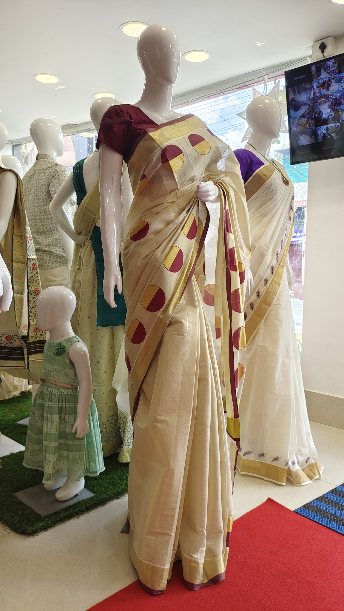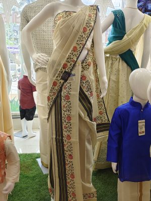 Golden Tissue Set Mund with Printed Golden Kasavu